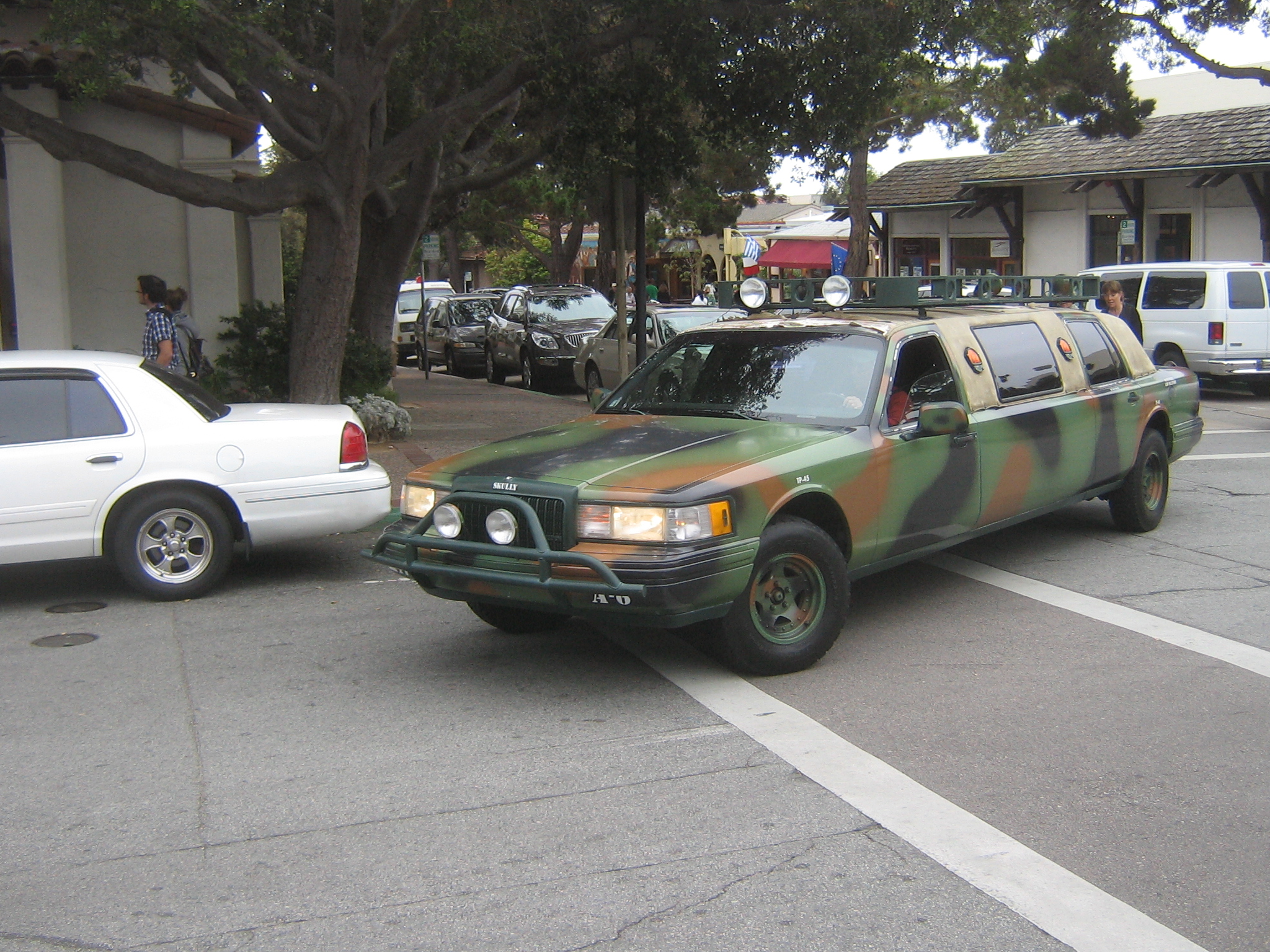 While in Carmel during Concours Weekend, pretty much anything in the world of cars is fair game. Ferrari F430s become commonplace, Bentley Continental GTs clog all the roads, and a Honda Civic becomes a rare sight. But, of course, there’s always something so unique and off-the-wall that no one expects to see it. In this case, someone took a humble stretched Lincoln Town Car and turned it into something straight out of Jurassic Park, complete with a roof rack, forest camo paint, and a bull bar with fog lights. A raised ride height and off-road tires complete the look on what is, in my personal opinion, the ultimate way to ride through the Apocalypse.