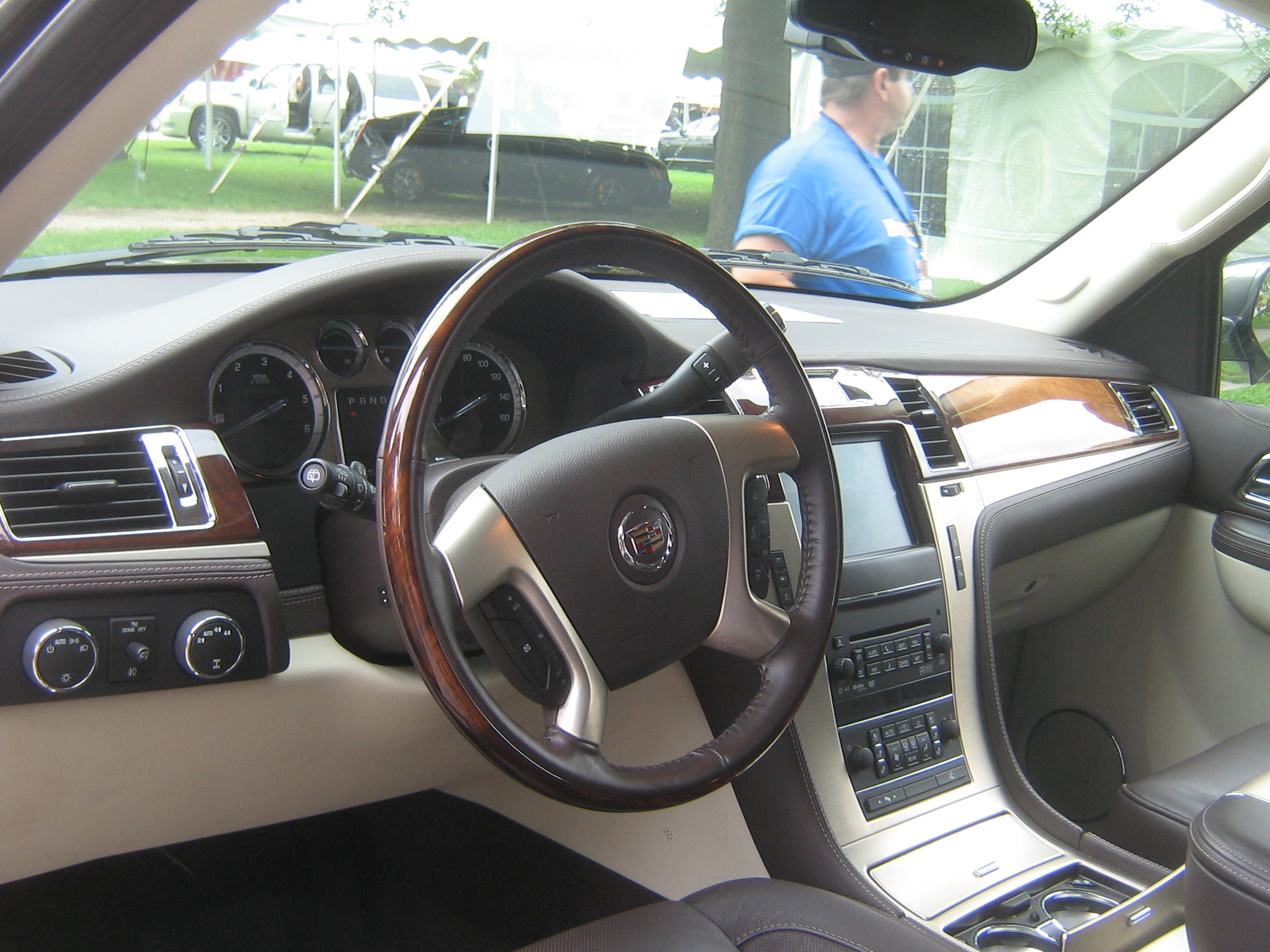 The big Caddy is a handsome-looking thing on the outside, but after opening the door, I realized once again why people buy Range Rovers or GL-Class Mercedes. Staring right at me is a steering wheel, shifter, and instrument panel right out of the Tahoe, a big minus in my book, especially considering that the Cadillac is positioned against the German luxury brands, plus Lexus and Infiniti. The leather on the inside is nice, on the other hand, and the wood trim, unlike on previous Cadillacs, doesn’t look fake at all. Thanks to the body-on-frame design and 4WD system, step-in is on the high side, but once inside, I found the seats to be comfortable (soft, cosseting, and plenty of cushioning), and the instrument panel to be very easy to understand. Visibility is typical GMT900, so it’s very good, and the navigation system and sound system are easy to manage.