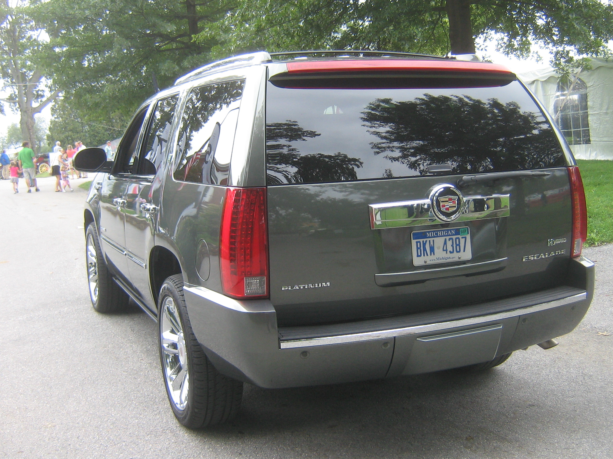 The hybrid version of the Escalade has been around since the 2009 model year, and not much of it has really changed. Under the hood is a combined electric motor to a 6.0L Vortec V8 engine, producing a combined 332hp and 367 lbs-ft of torque. Rear and four wheel drive are both available, in either standard or Platinum trim. Be aware, the Platinum is not for those who dislike chrome on their truck; the grille, 22-inch rims, side molding, and mirrors have enough chrome trim to reflect the Sun into an entire family’s eyes. Not that I cared, as I think a Cadillac without chrome is a crime. My test car happened to be the top model, a 4×4 Platinum, equipped with scads of chrome, leather seats, a wood-trimmed steering wheel, real wood on the dashboard, heated and cooled seats, a power tailgate, and a DVD player for the kids in the back. The Platinum trim even comes with the Advanced Magnetic Ride Control from the CTS-V. The 2012 model happens to cost nearly $87,000 in this trim, about 7 grand higher than a similarly optioned Mercedes-Benz GL350 BlueTEC or Audi Q7 TDI.