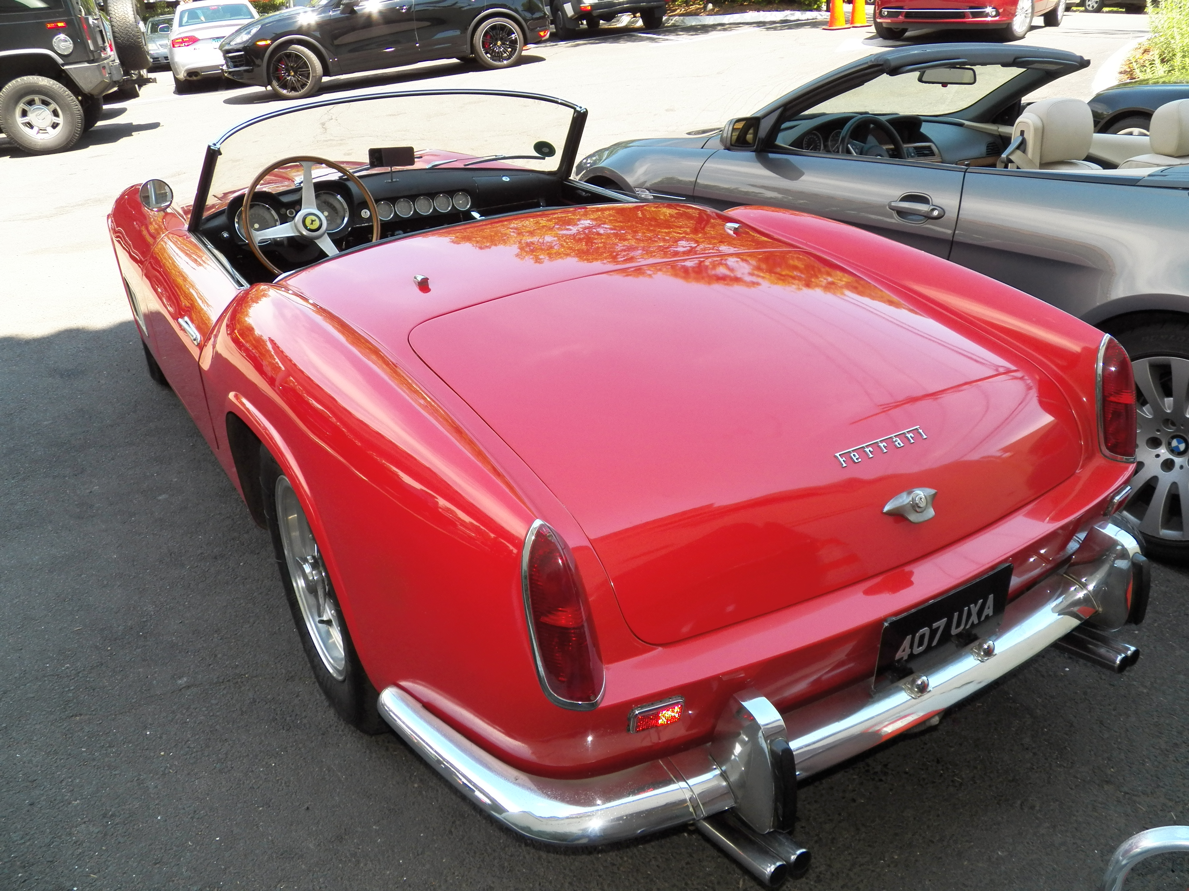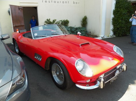 While at the Greenwich Concours this June, I walked around the hotel across the harbor and came across this unrestored California Spider in the front parking lot.  It is number 1581GT, the 41st of only 50 made.  According to Hemmings Motor News (in their December 2011 issue), the current owner, Thierry Morin, has had it since 2002, when he was the high bidder at Christie’s Pebble Beach auction in 2002, for over $1.2 million–it had less than 26,000mi when he purchased it from the previous owner, William Ruger Jr. The first owner, Alfred E. “Erwin” Goldschmidt, was a successful amateur racer, but Ruger took it off his hands when the car was about six months old. It is still a completely unrestored car and won Best Preserved at the 2005 New York Concour.  It was shown as well at the  2008 Greenwich Concours and the 2011 Fairfield Concours.  This is one find I will not soon forget.