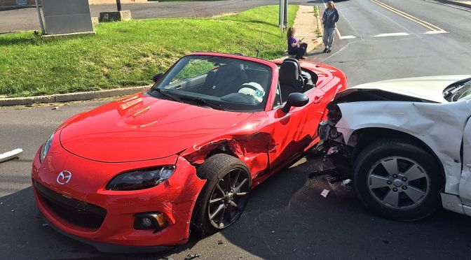 After I knew we were all okay, I looked back over at my gleaming read Miata. I had just signed the papers on it 4 days prior, and now here it was, smashed up good in the middle of the street. I didn’t have time for emotions, though, I knew I had to take document the scene, and take photos from every angle.