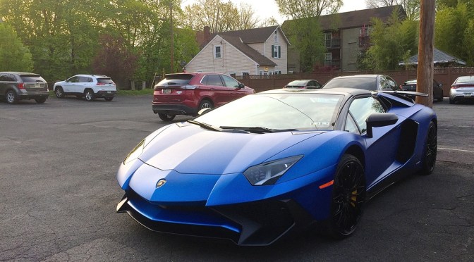 Seeing a high-level exotic car, like this Lamborghini Aventador SV Roadster at a car event is a thrill, but seeing it out in the wild is something totally different. Only when such a machine is surrounded by everyday normal things can you fully appreciate the true magnitude of its insanity. There’s also the psychological factor of expectation, at a car show you expect to see remarkable cars, but I was standing in a cigar shop with my buddies when this thing rode by. I suddenly recognized the note of a ferocious V12 going by, and I looked out the window just in time to see the blue shape of an Aventador with a massive wing on the back… it had to be an SV!