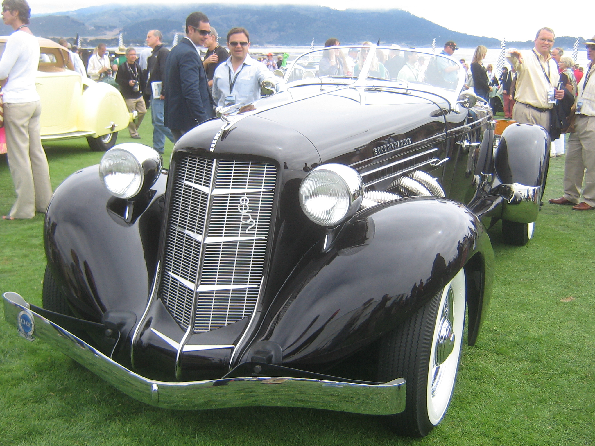 Auburn boat-tail speedsters like this one are among some of the world’s most collectible prewar American convertibles, owing to their extremely low production, high price tag, and (for the era) blistering performance. This flawless black example showed up to the Pebble Beach Concours this summer, and I was fortunate enough to grab a few pictures of it. This one in particular is a 1936 Model 852, the final year of production for not only this car, but the Auburn name as a whole. It is a breathtaking car, and with only 1850 sold during 1936, this 100mph-plus roadster was a treat on the street in its day, and still is today. Continue reading 1936 Auburn 852 Boattail Speedster at Concours
